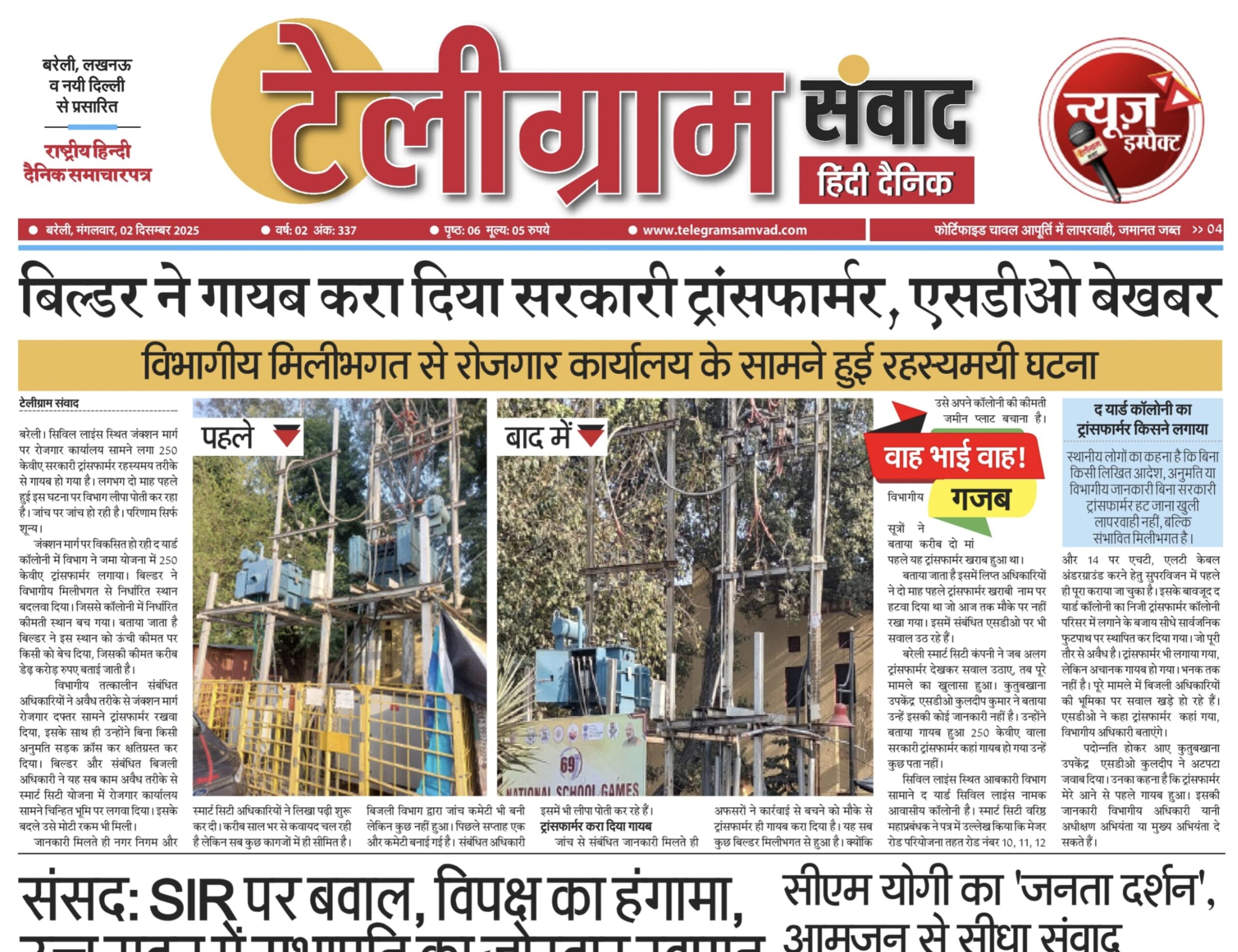 टेलीग्रामसंवाद ईपेपर दिनांक :02 सितम्बर 2025,दिन:मंगलवार