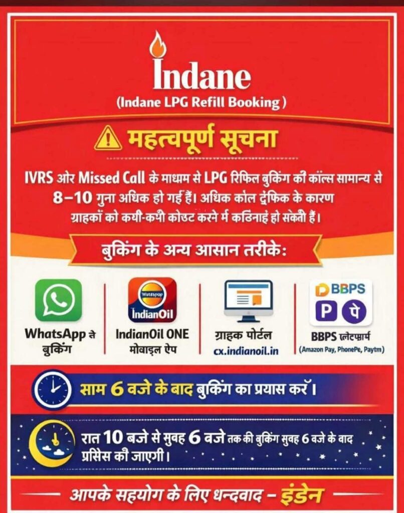 ऑनलाइन बुकिंग के बिना सिलेंडर आपूर्ति बंद होने पर तमाम परेशानियां बढ़ गई है इंडियन ऑयल कॉरपोरेशन सरवर काम नहीं कर रहा है। जिले में सबसे अधिक इंडेन गैस कनेक्शन हैं। जिला प्रशासन और इंडियन ऑयल कॉरपोरेशन इसका कोई विकल्प नहीं चल पाया है कंपनी अधिकारियों ने बताया गुरुवार तक स्थिति समान हो जाएगी। उनका कहना है अचानक ज्यादा बुकिंग और मांग होने से सरवर प्रभावित हो गया है। वहीं कॉमर्शियल सिलेंडरों पर रोक लगाए जाने से रेस्टोरेंट आदि दुकानदारों की परेशानी बढ़ा दी है।