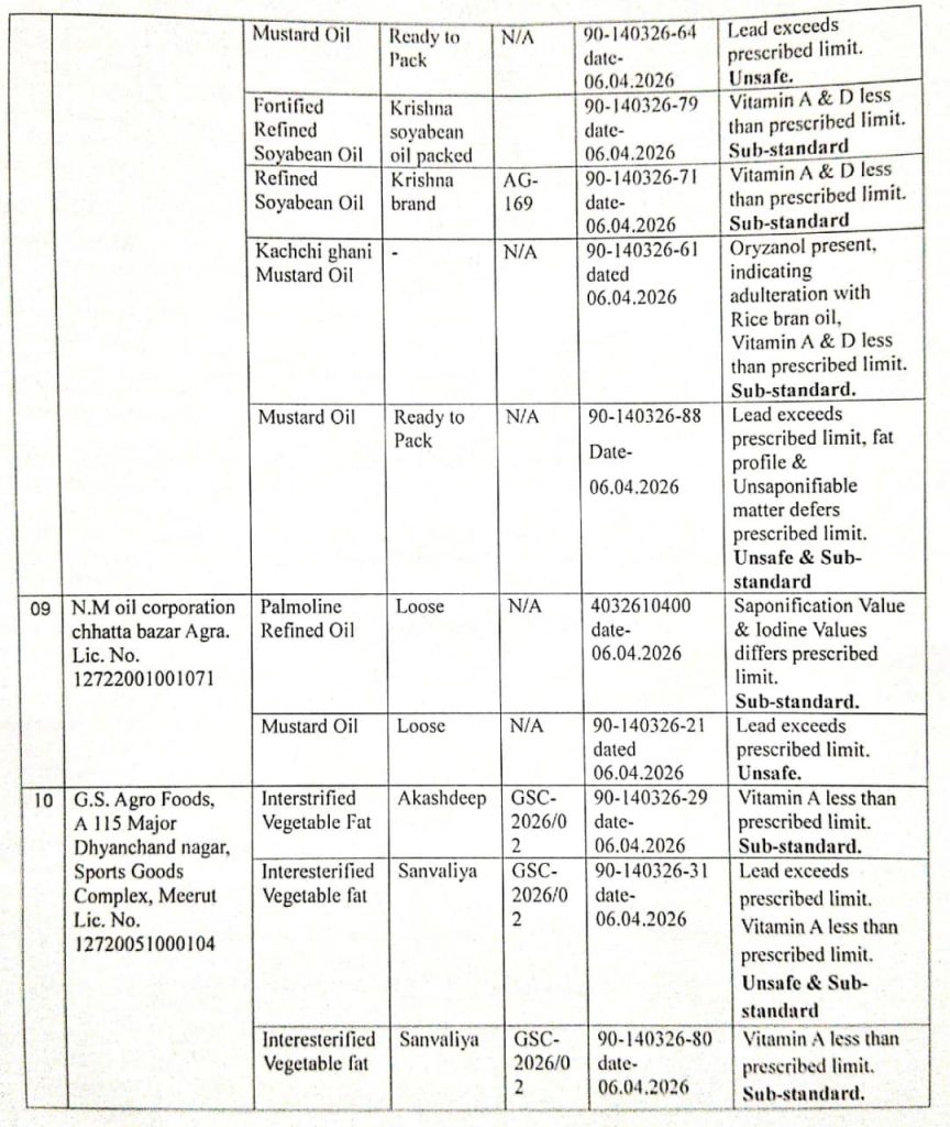 एफएसडीए टीम ने भरे थे सैंपल, जांच में अधोमानक और अनसेफ मिले